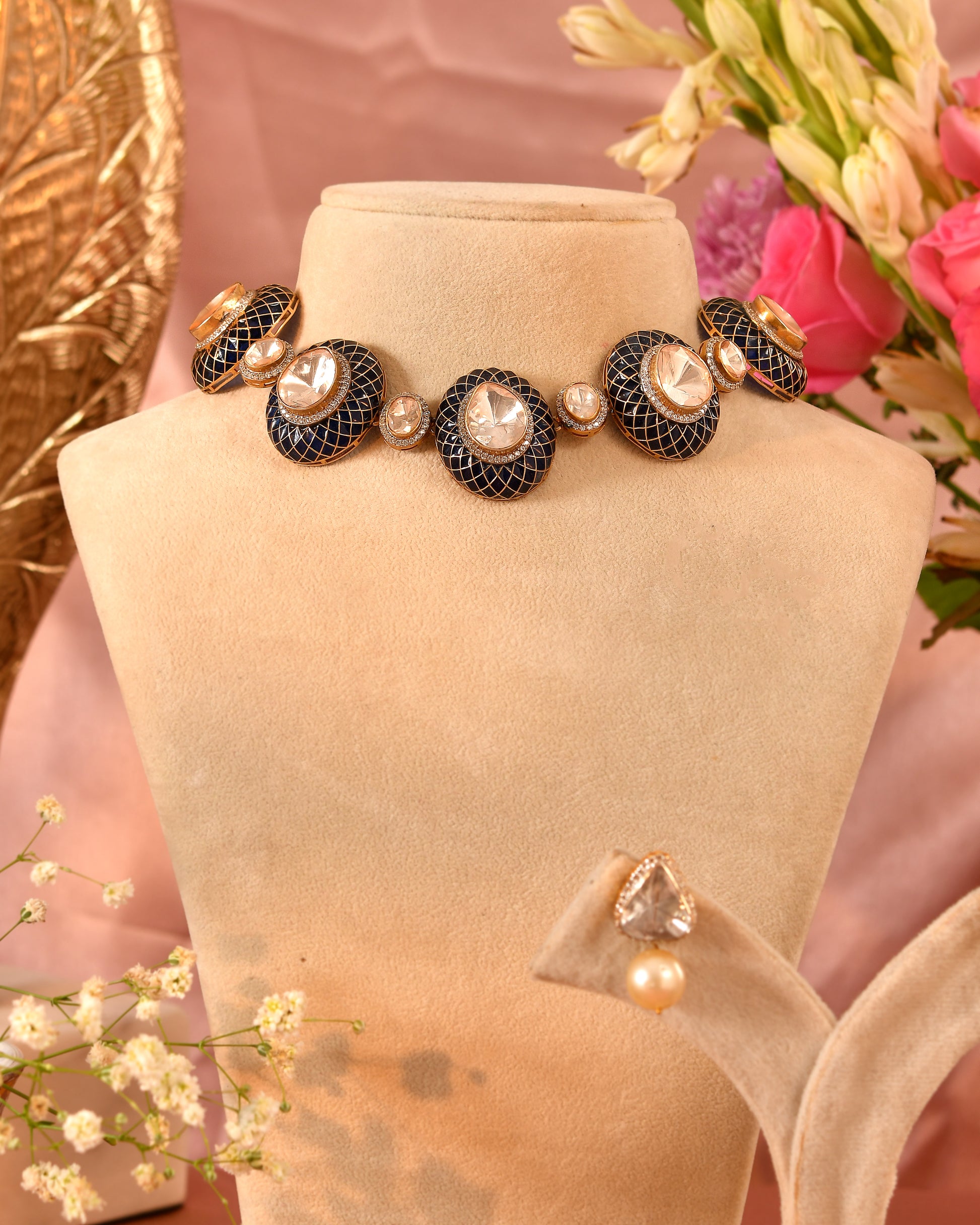 Elegant polki chokar with gold and enamel craftsmanship, perfect for bridal luxury