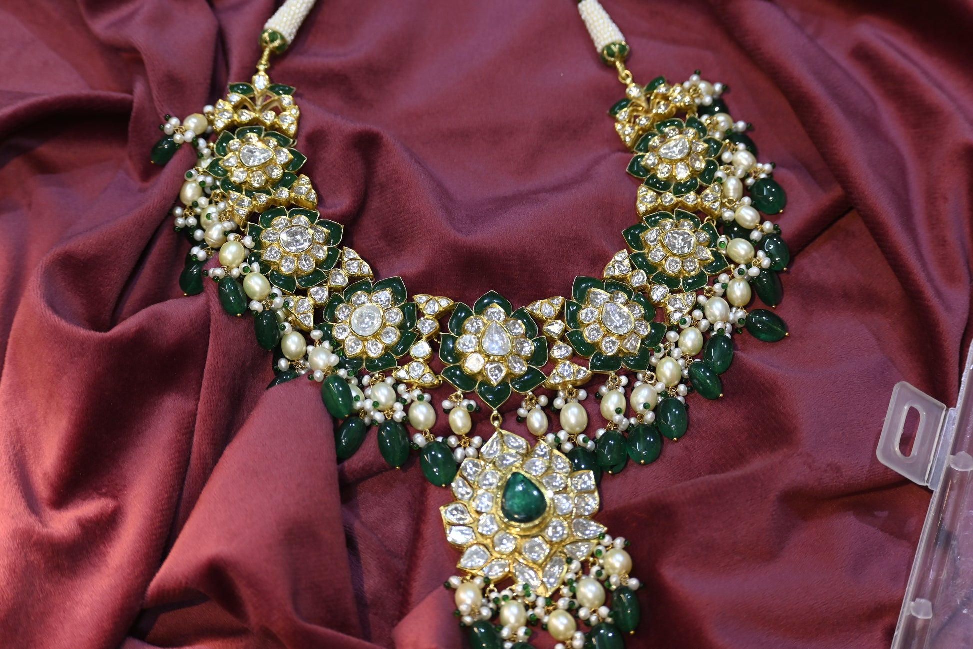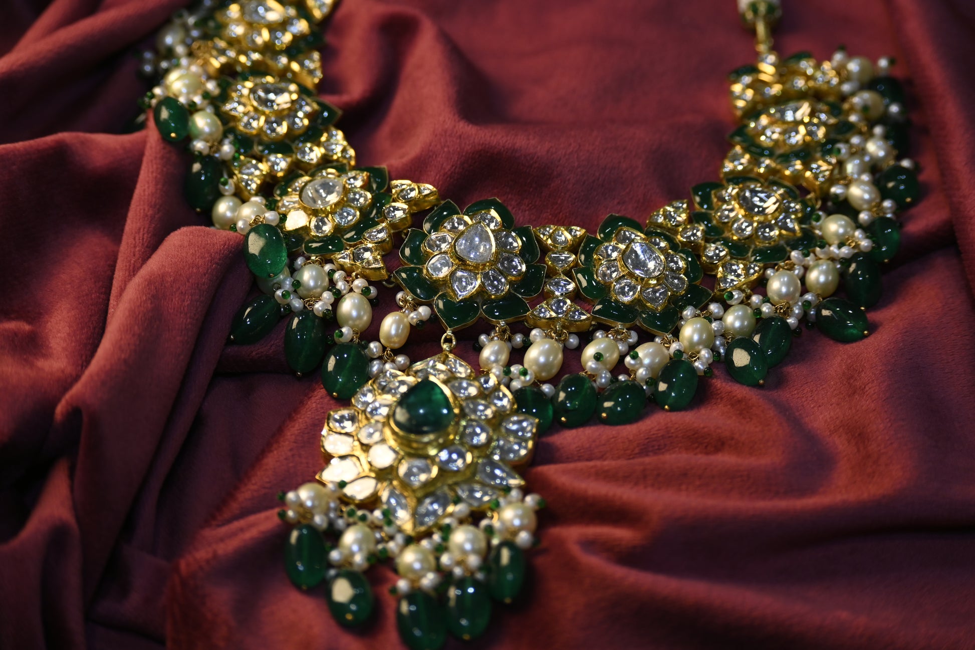 Exquisite floral chokar with emeralds and diamonds for royal finesse.