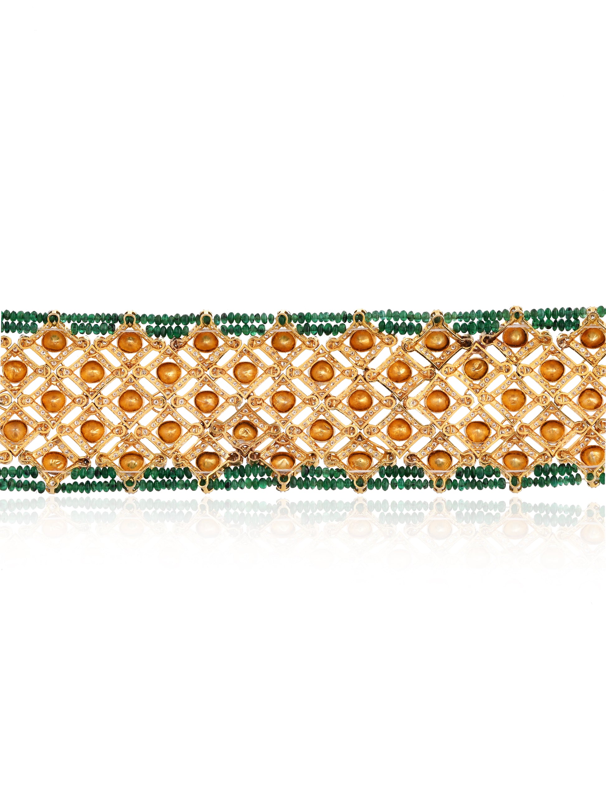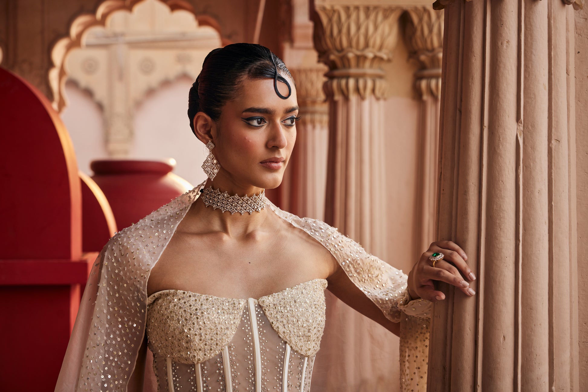 Mayaang Diamond Chokar is a luxurious piece featuring 14K gold, rose-cut stones, and brilliant diamonds. Designed for brides and wedding celebrations, it radiates sophistication, heritage, and fine craftsmanship. This chokar elevates any bridal ensemble with elegance, finesse, and royal charm.