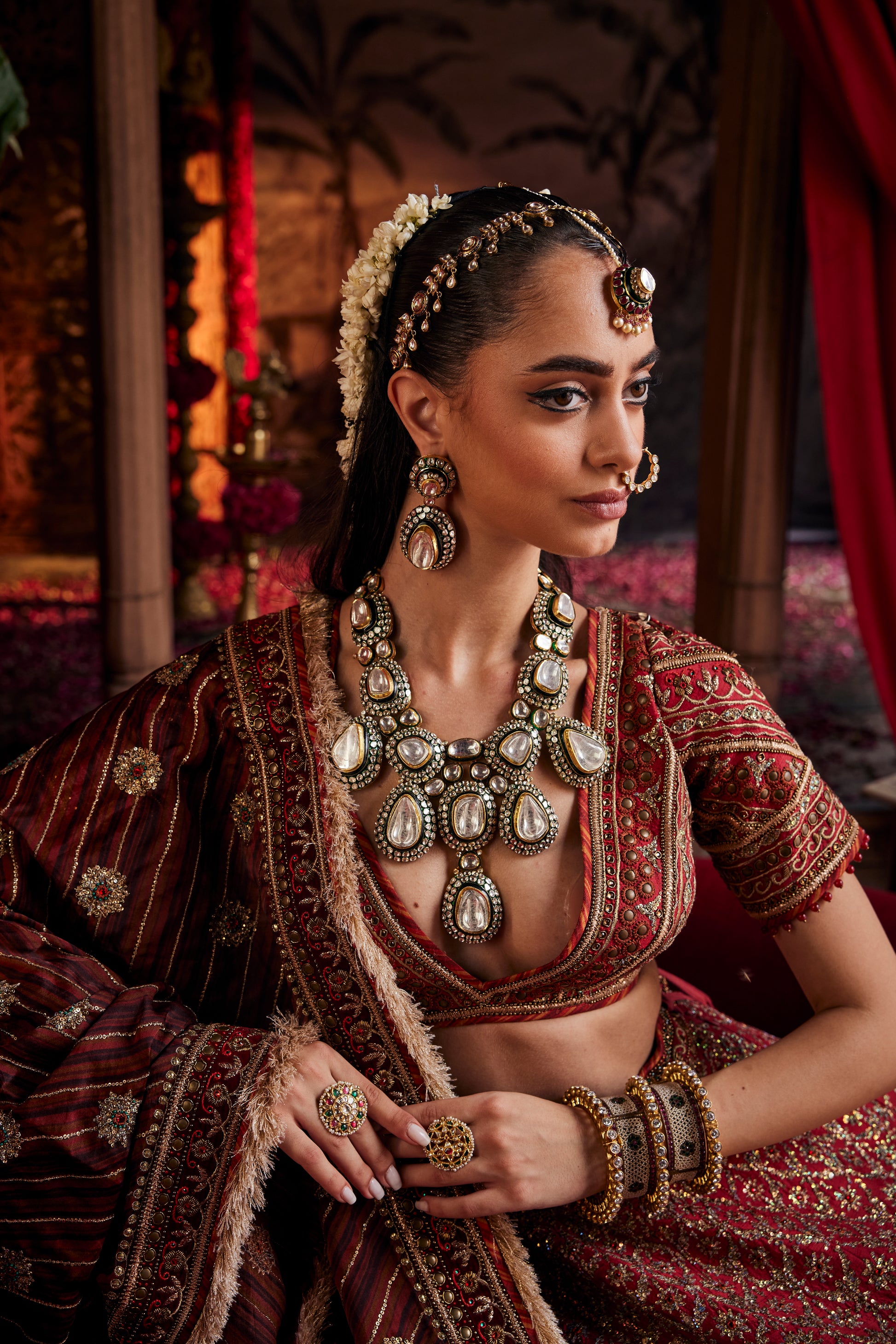 The Noor-e-Chandani Polki Necklace captures the ethereal beauty of moonlit nights. Handcrafted with authentic Polki diamonds and fine gold, it exudes sophistication and luxury. Perfect for bridal wear, royal weddings, and luxury occasions, it reflects Kala Johare’s legacy of fine craftsmanship, heritage artistry, and premium Polki jewellery. A statement necklace designed to shine in every celebration.