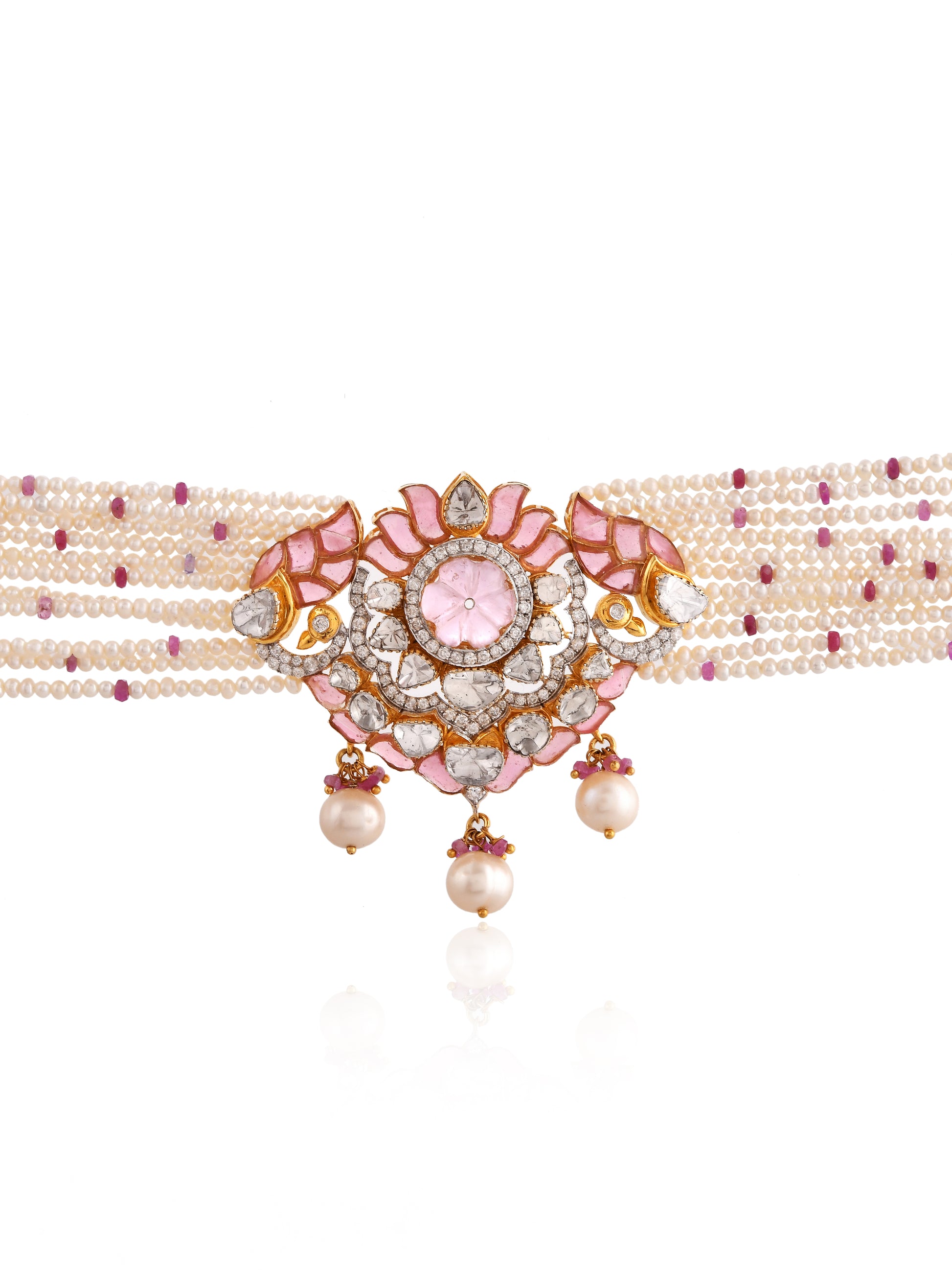 Delicate polki chokar crafted with finesse for royal bridal celebrations.