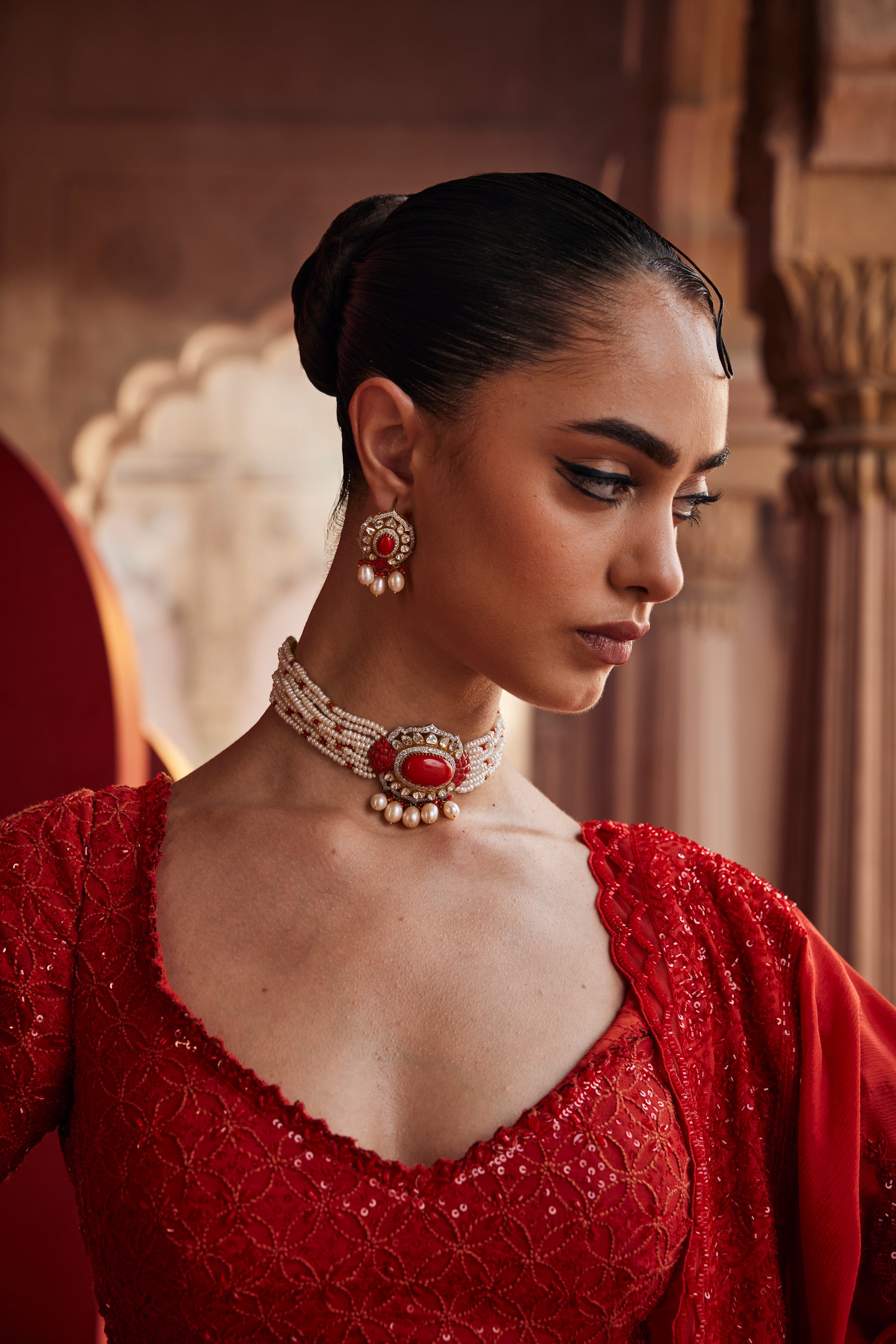 Royal Ziva Chokar combines luxurious polki work with diamond accents to create a regal bridal masterpiece. Perfect for weddings and high-profile celebrations, it radiates finesse, craftsmanship, and heritage-inspired sophistication. Each detail reflects elegance, legacy, and timeless luxury.