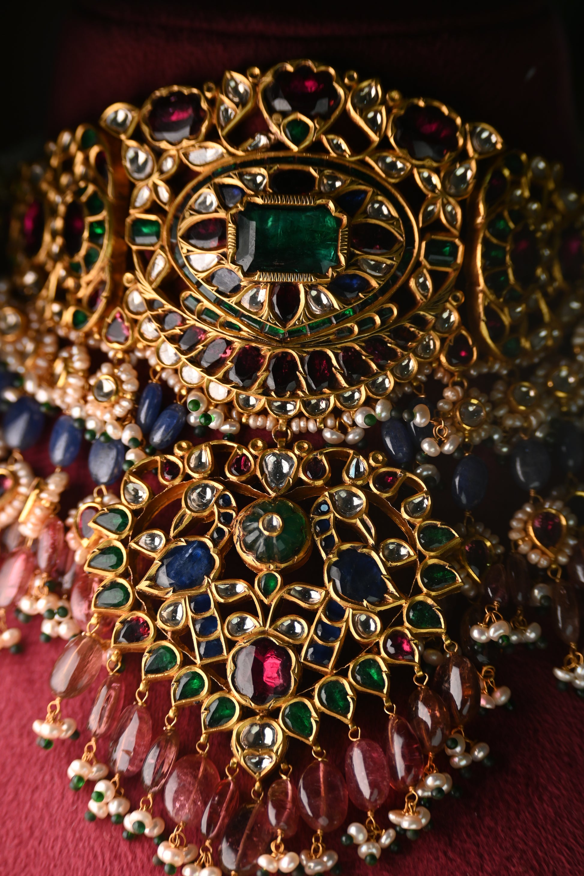 Opulent kundan chokar with diamonds and gemstones for royal weddings.