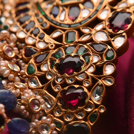 Shahi Kundan Chokar is a statement piece of luxury, craftsmanship, and bridal finesse. Featuring exquisite kundan, diamonds, and gemstones, it captures the legacy and elegance of traditional Indian jewellery. Ideal for brides and royal events, each detail reflects heritage and sophistication.