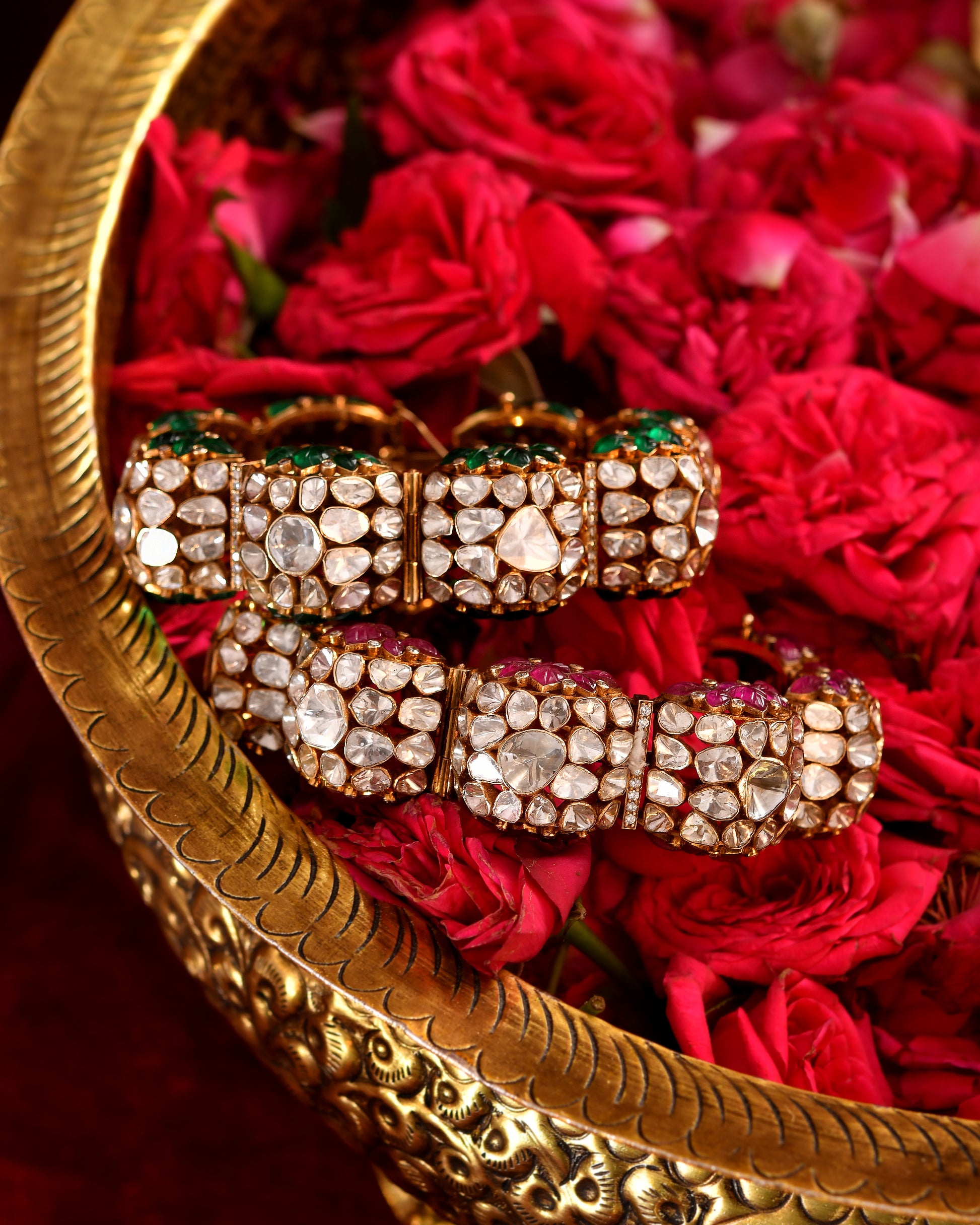 The Tarakashi Bangle showcases Jaipur’s rare wirework technique, blending heritage finesse with luxury aesthetics. A statement of delicate artistry, it is perfect for collectors of handcrafted fine jewellery.