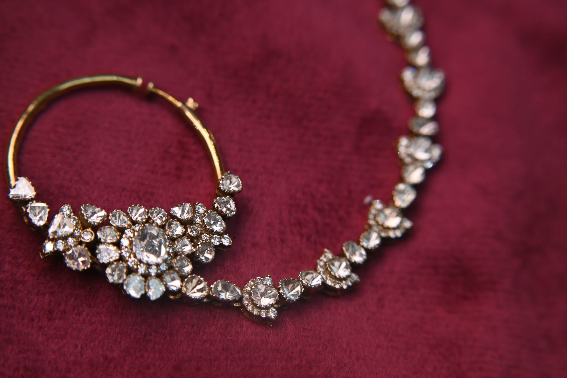 Veerani Polki Nose Pin embodies the bold elegance of Rajputana tradition. Featuring hand-set Polki diamonds in a meticulously designed gold base, it captures the essence of royalty and timeless Indian artistry. Designed for women who appreciate fine craftsmanship, this nosepin is perfect for weddings, festive celebrations, or elevating ethnic ensembles. Kala Johare’s signature approach ensures each piece combines luxury, authenticity, and intricate detailing, making the Veerani Polki Nose Pin not just jewellery but a heritage statement. Its delicate sparkle and refined design make it a must-have for connoisseurs of classic Polki nosepin