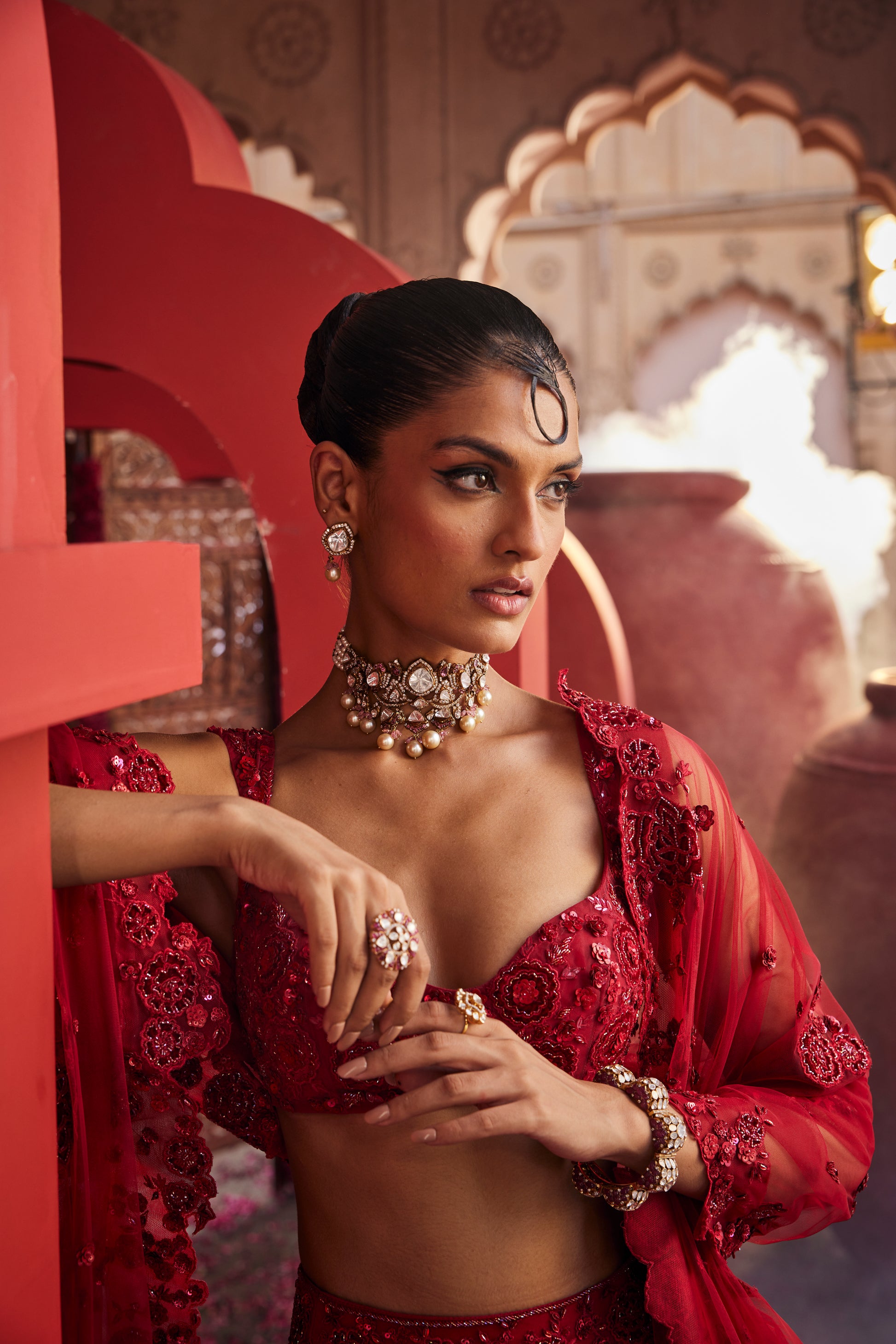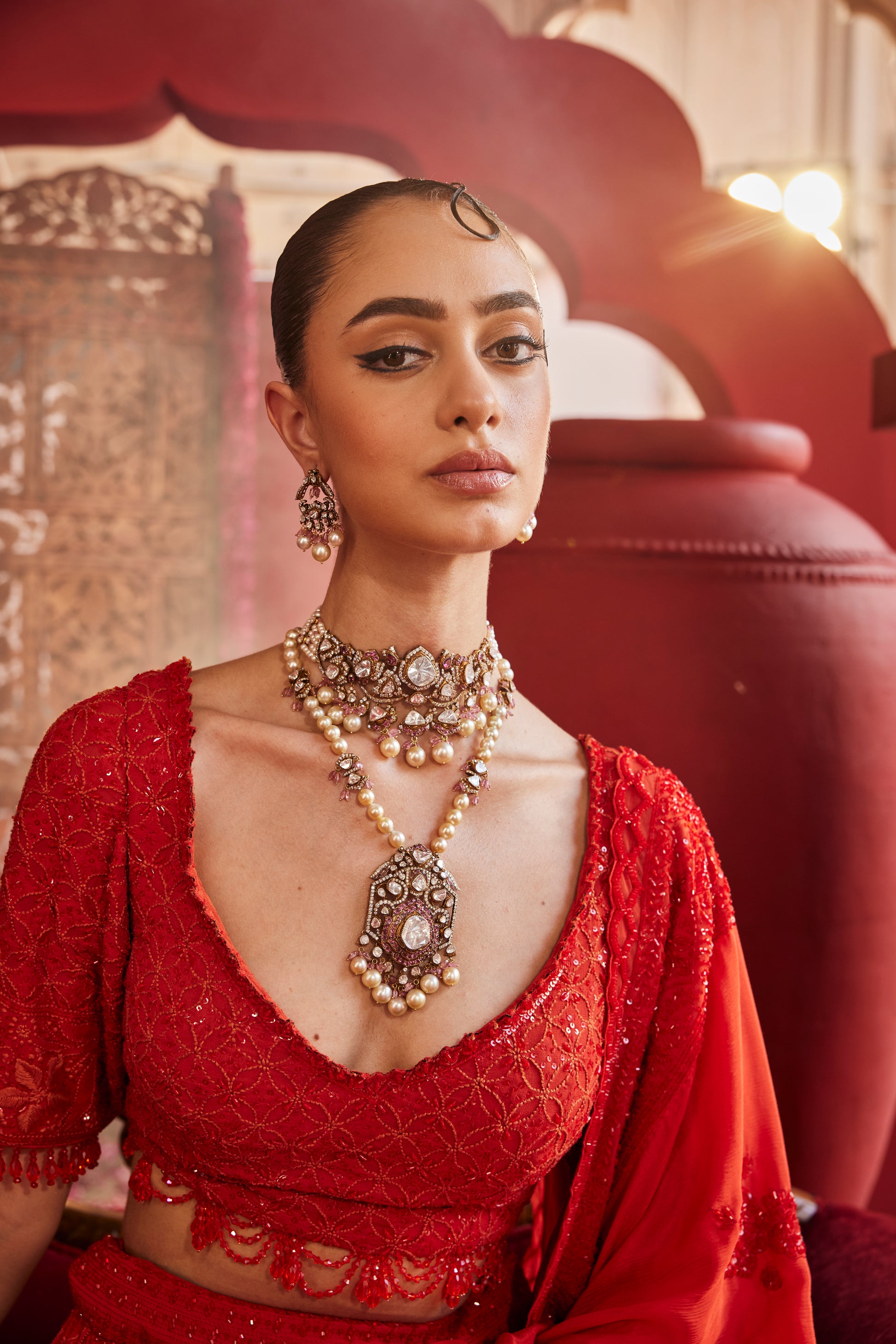 Vilasa Polki Chokar embodies the perfect combination of tradition and modern bridal luxury. With intricate polki detailing and superior craftsmanship, this piece reflects finesse, legacy, and sophistication. Ideal for weddings and regal occasions, Vilasa is a statement of timeless elegance and royal charm.