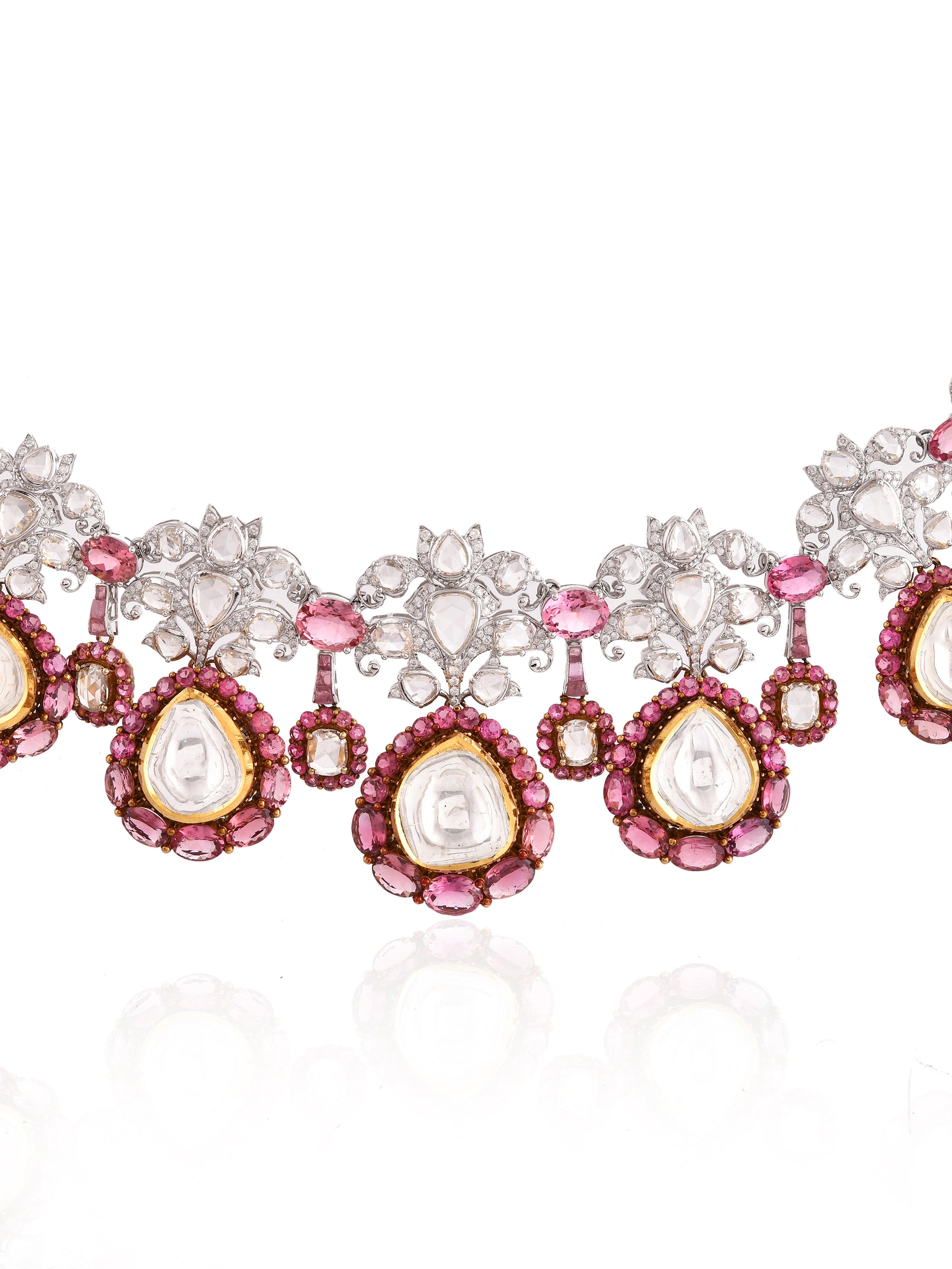 Zaaya Diamond Chokar is a symbol of bridal luxury and craftsmanship. With precision-set diamonds and gold detailing, it reflects elegance, finesse, and a regal legacy. Perfect for weddings, festive celebrations, and royal ensembles, it embodies timeless sophistication and premium artistry.